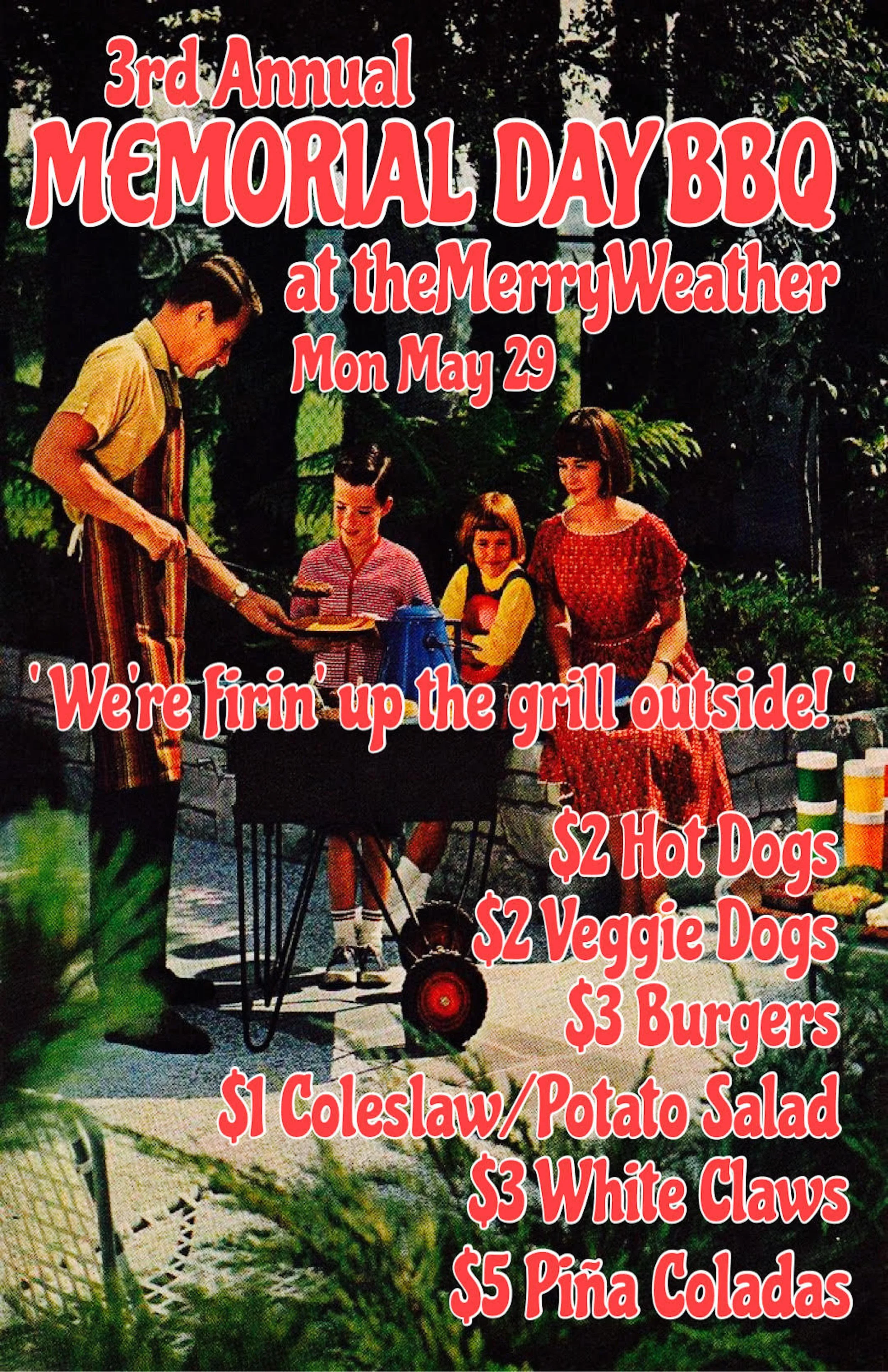 Back to All Events 3rd Annual Memorial Day Cookout Monday, May 29, 2023 3:00 PM 11:55 PM Google Calendar ICS