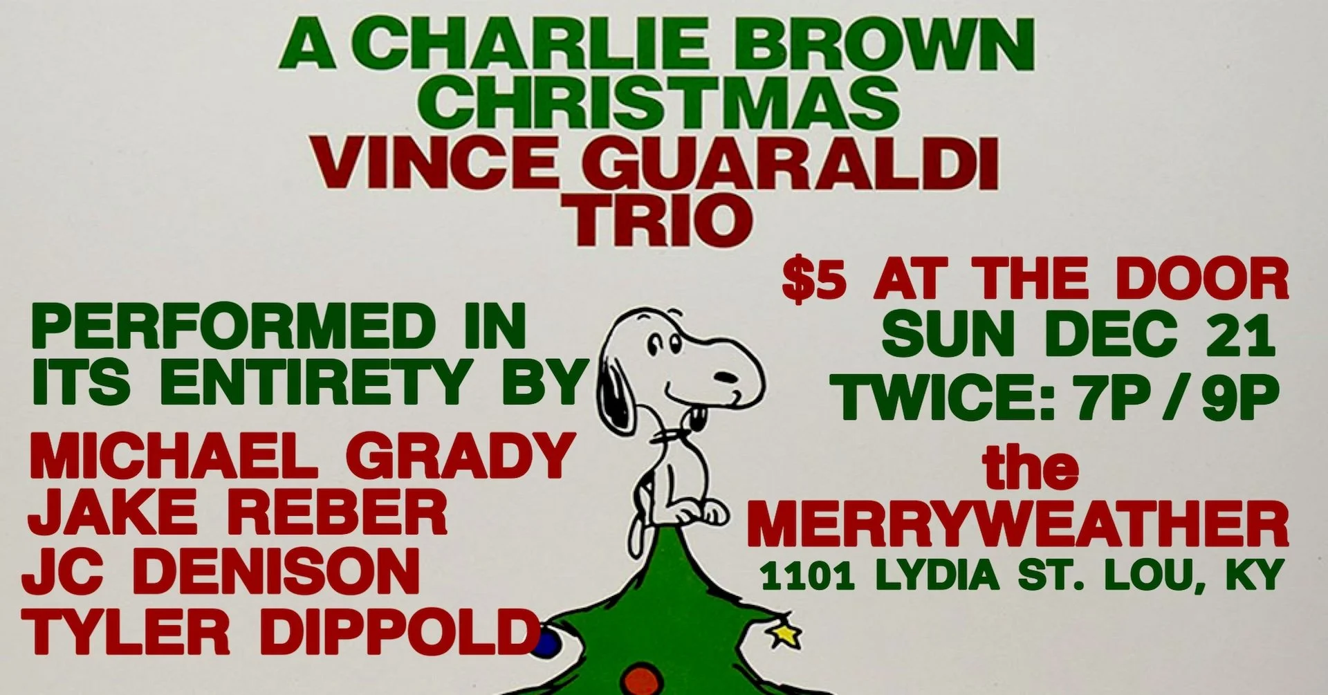 2 performances at 7 and 9. $5 at the door (cash or Venmo). Limited space. Eggnog available while supplies last.